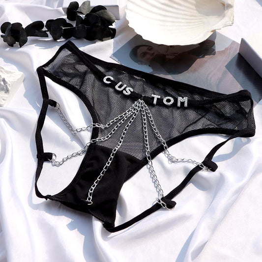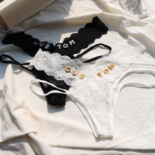 Yes! We can actually customize your new thong with any word that comes to mind. It can be his first/last name, his bed nickname, slurs or even a meaningful date/short phrase that holds significance for you both.