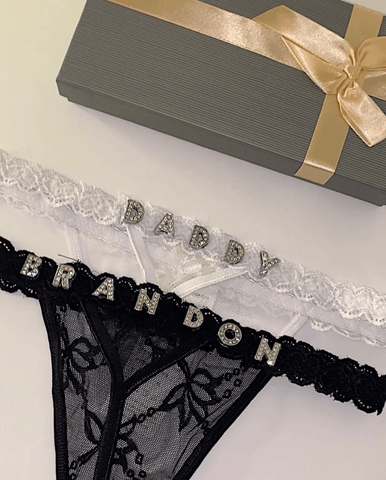 Yes! We can actually customize your new thong with any word that comes to mind. It can be his first/last name, his bed nickname, slurs or even a meaningful date/short phrase that holds significance for you both.